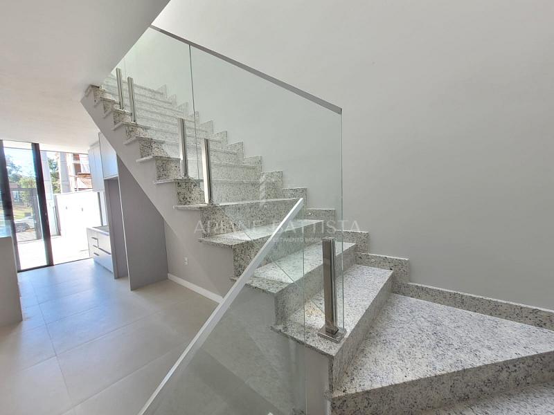 • Escada em granito com guarda-corpo em vidro